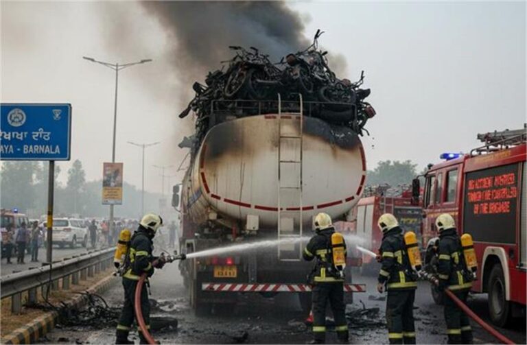 बरनाला: स्थानीय हंडियाया रोड पर उस समय एक बड़ा हादसा टल गया जब मोटरसाइकिलों से भरे एक टैंकर (ट्रक) में बिजली के तारों की चपेट में आने के कारण भीषण आग लग गई। इस घटना के कारण इलाके में सनसनी फैल गई लेकिन फायर ब्रिगेड की टीम ने तुरंत कार्रवाई करते हुए आग पर सफलतापूर्वक […]